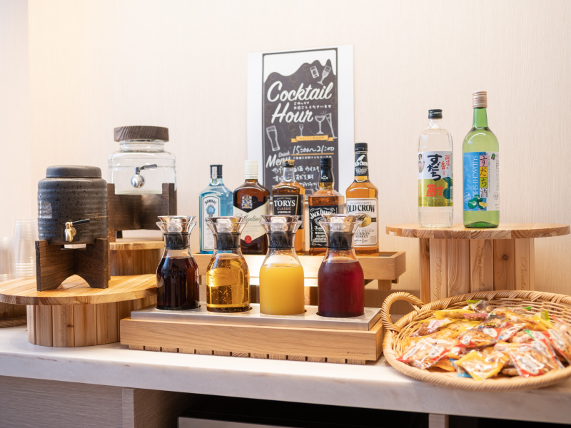 We offer a "Welcome Bar" in the Welcome Lounge where you can enjoy a variety of complimentary beverages.