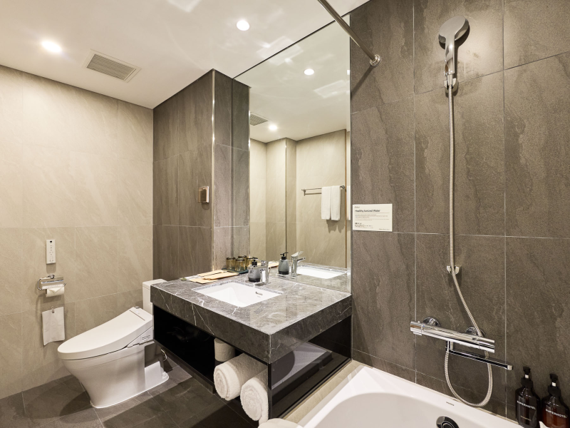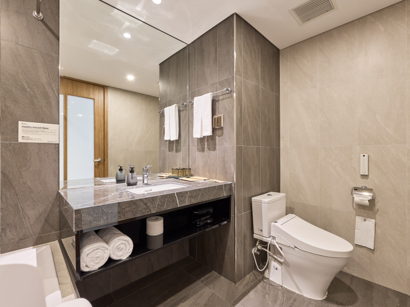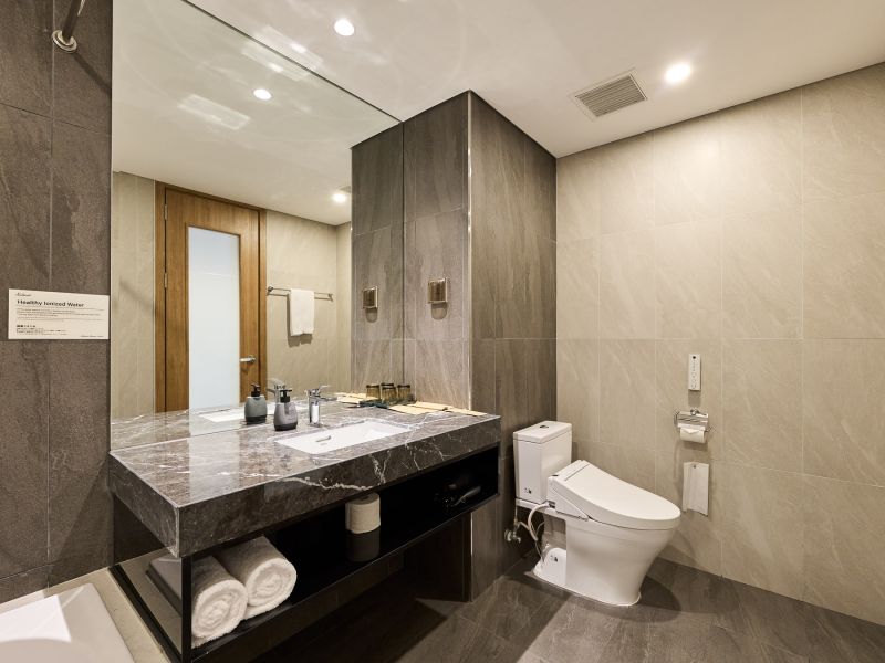 전관에서 침투력·항산화력이 뛰어난 건강 이온수나 로비에는 광촉매 공기 청정기를 갖추고, 물과 공기의 안심에도 고집하고 있습니다