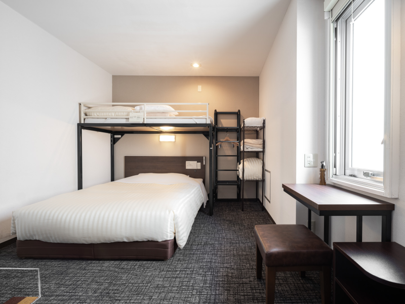 • 床尺寸:140公分 x 200公分(1張床)+ 90公分寬閣樓床(1張床)+ 90公分寬沙發床(1張床) • 房間面積:約14平方米